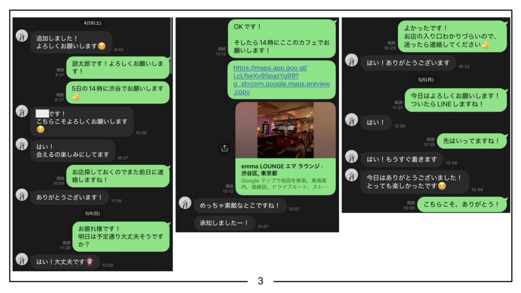 おっけーです!また待ち合わせ場所とか連絡しますね。